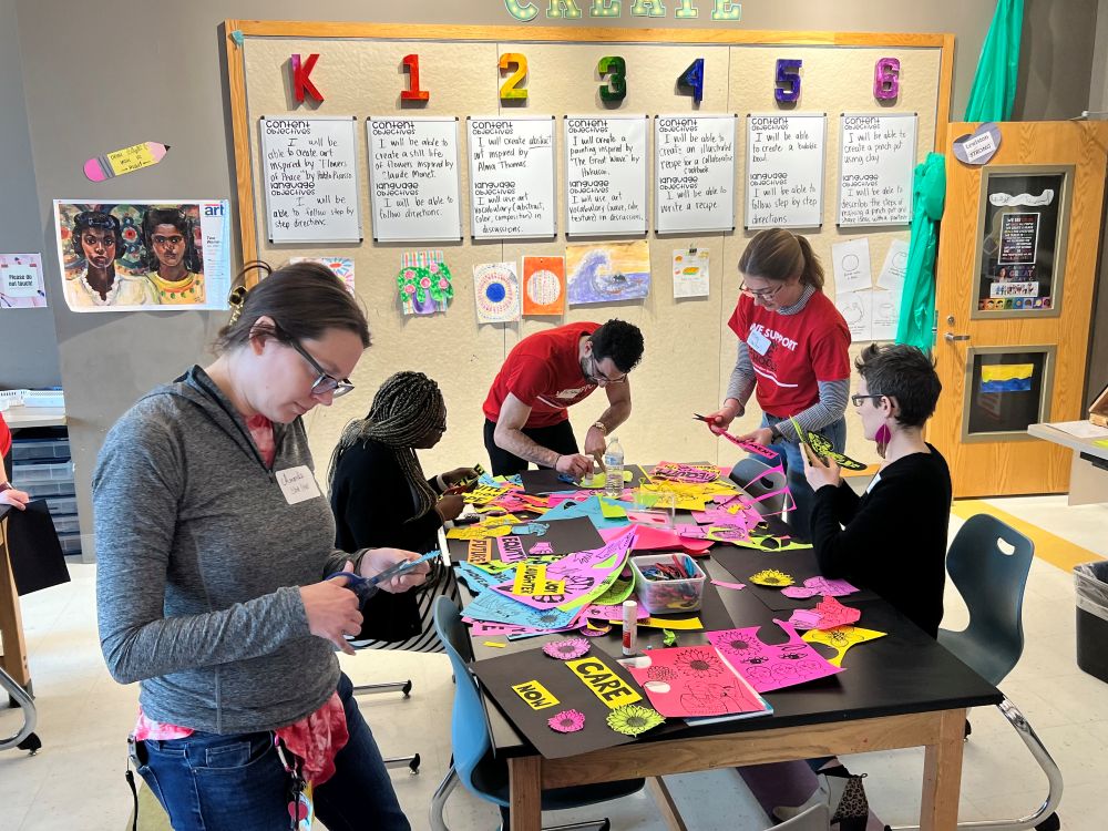 As the planning took shape, Griffin drew inspiration from a session she attended at the NEA Racial & Social Justice Conference called Art for Activism. She brought that energy back to Lewiston, where educators created powerful posters using artwork by Favianna Rodriguez. The posters were later used at a “Hands Off” rally held the same day.